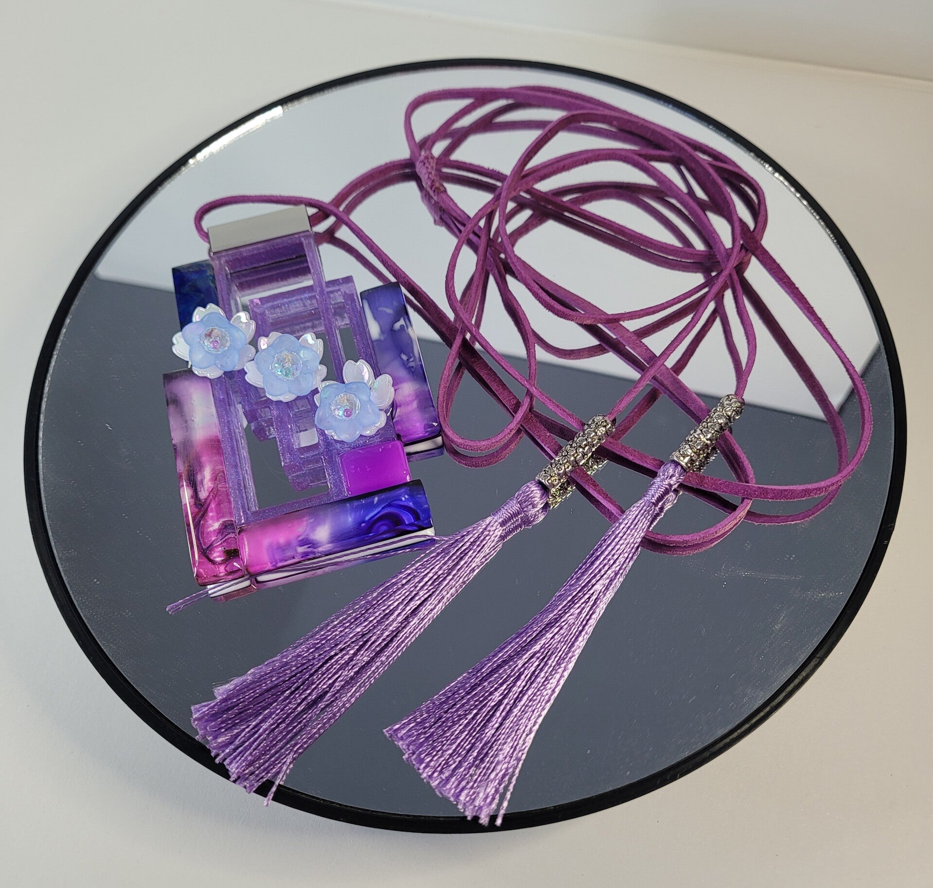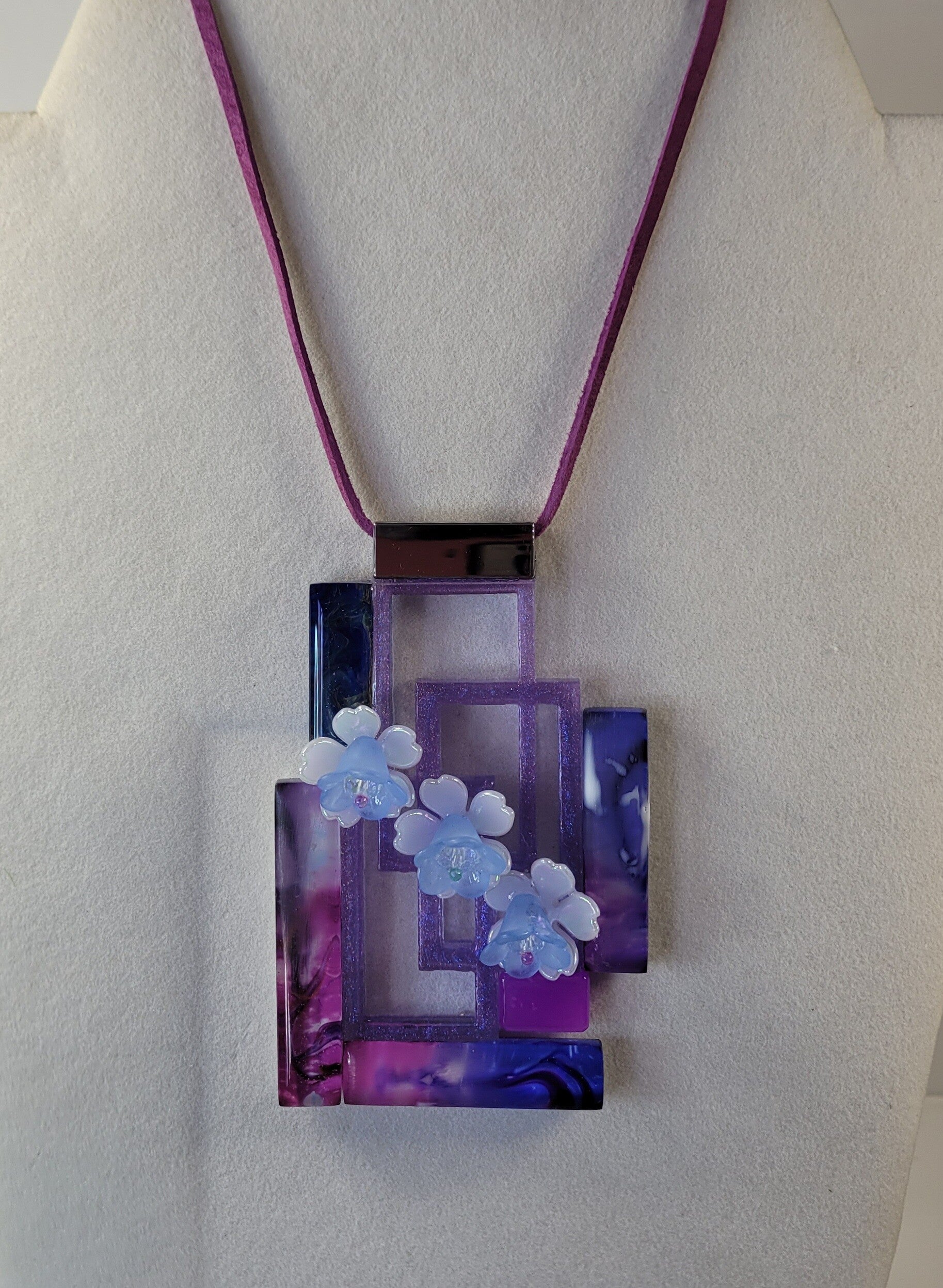 Geometric Resin Art Necklace Lavenders and Blues
