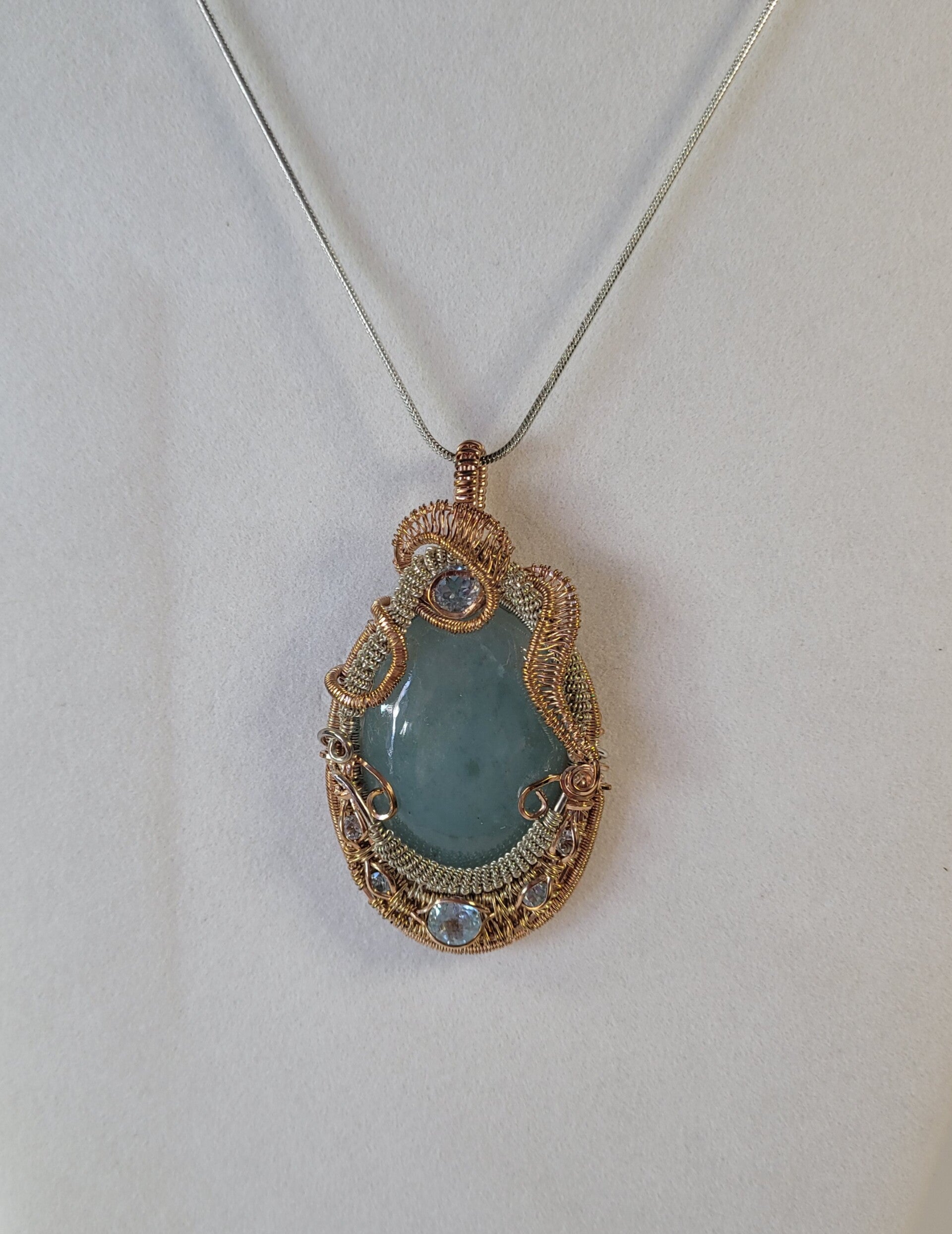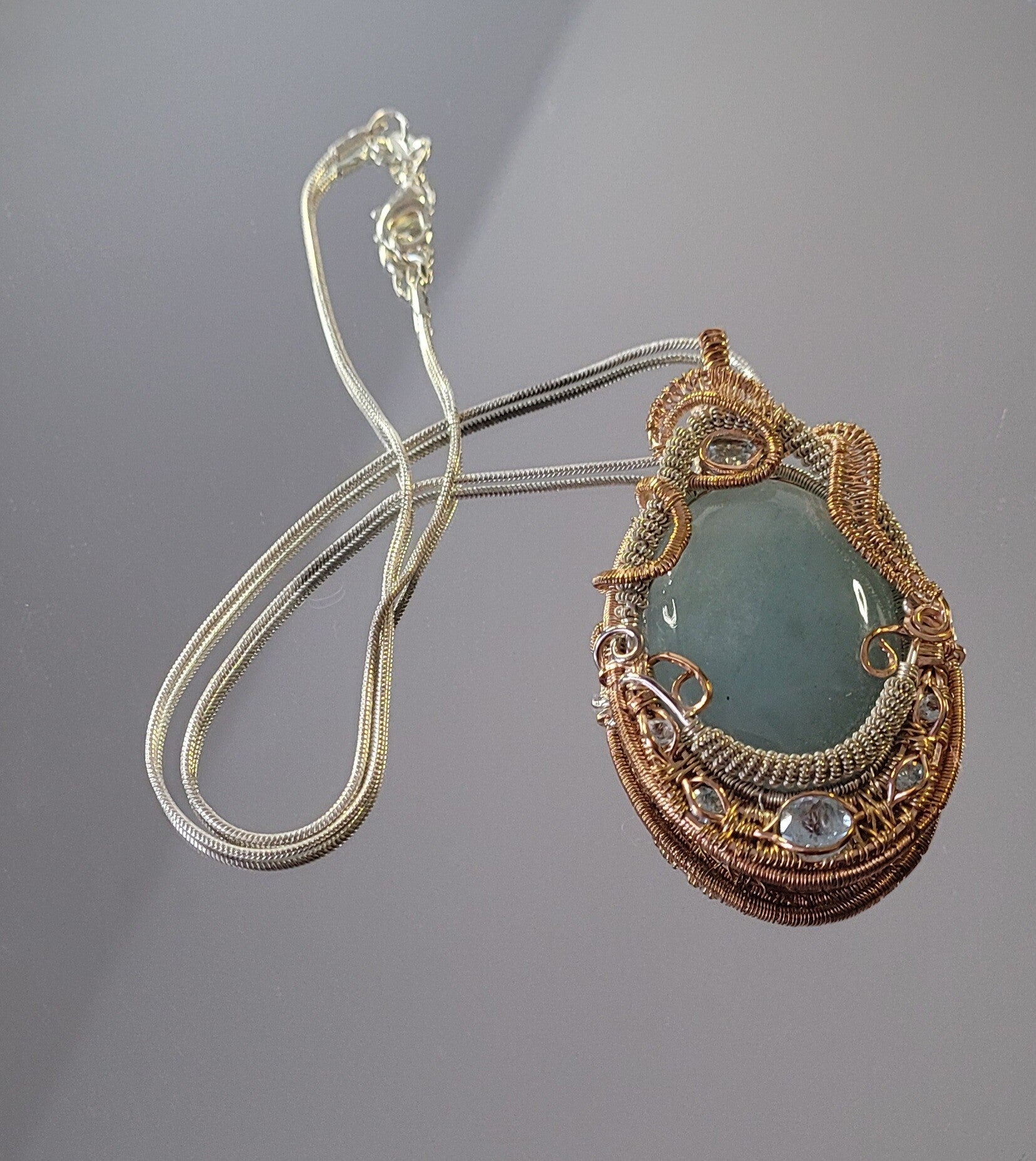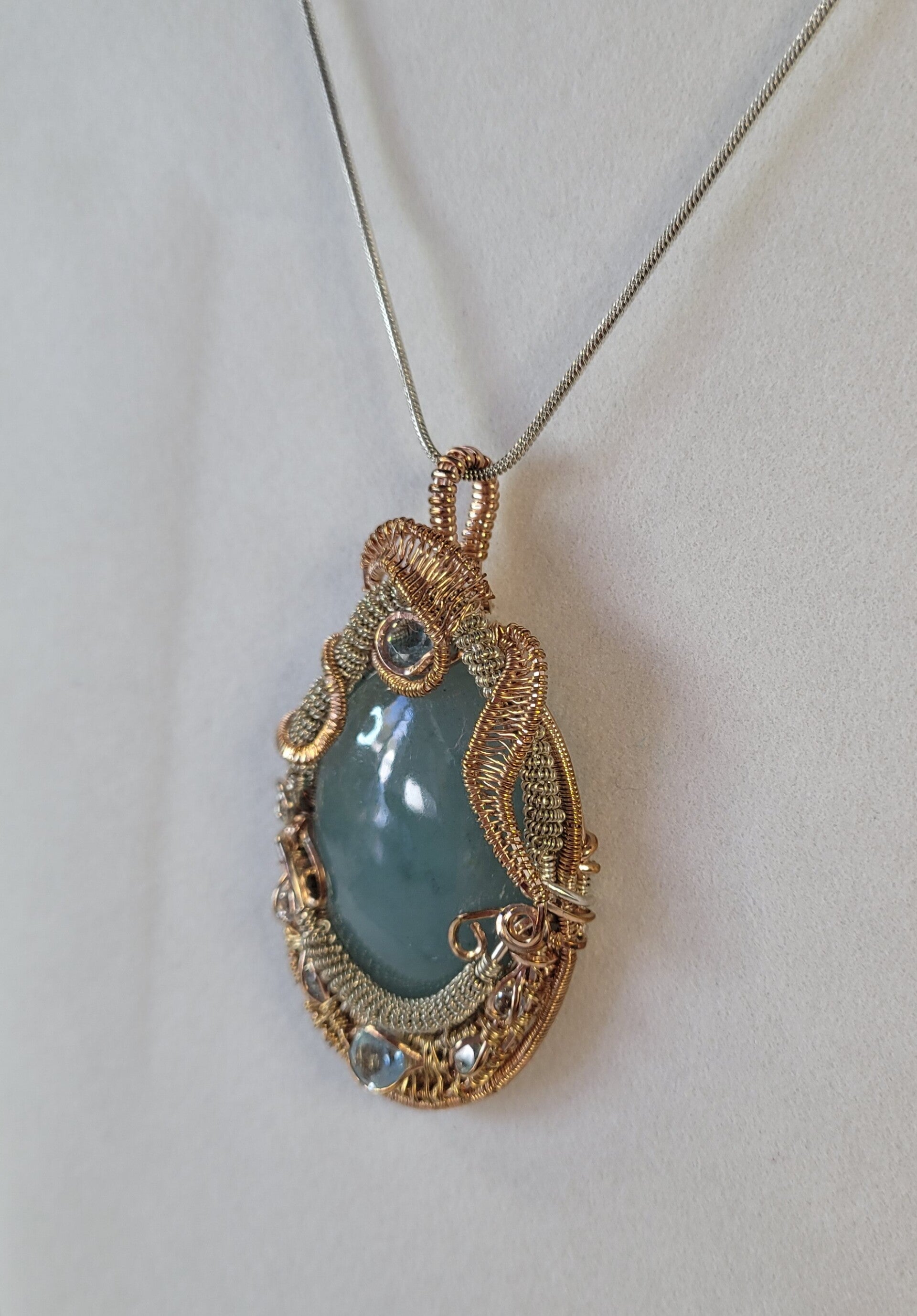 Aquamarine and Blue Topaz Wire Weave Mixed Metals Pendant