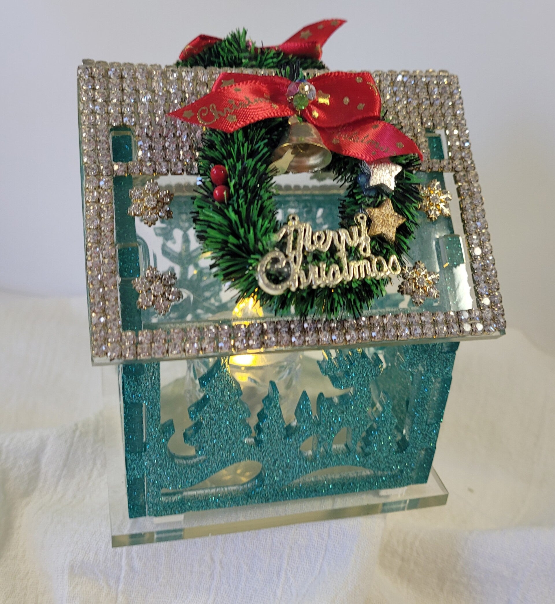 Decorated in rhinestones and Christmas Wreath.