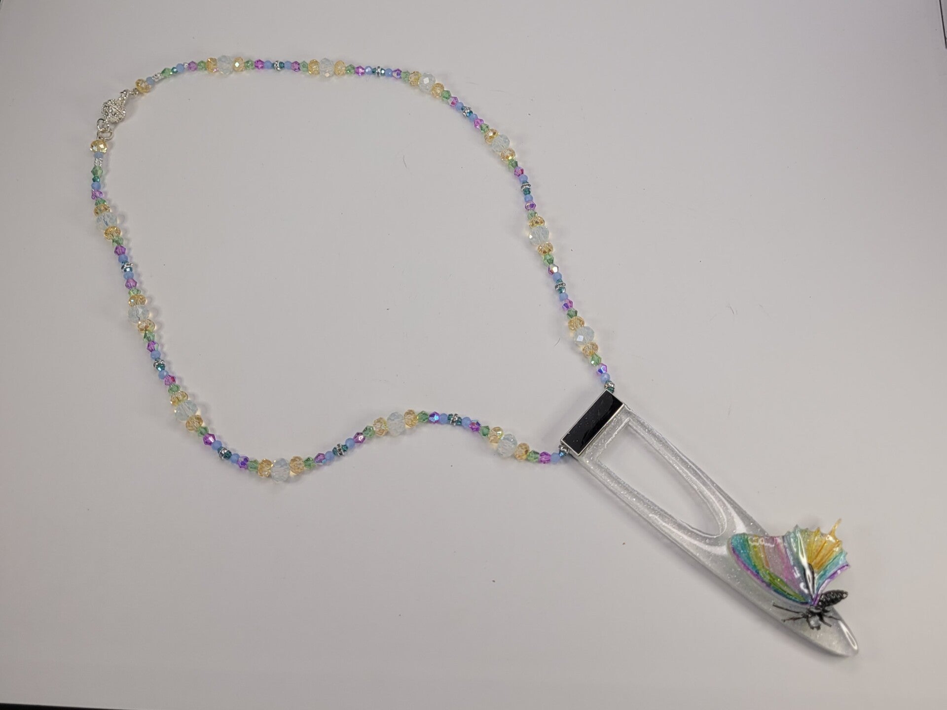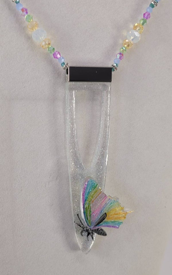 Sparkle, Sparkle in Resin Art. Such a pretty piece with all the colorful beads using the butterfly colors. Magnetic closure for ease of use, putting on and taking off.