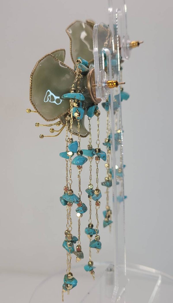The earrings are post and measure about 4" long including the flower.